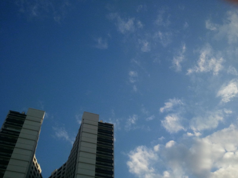 ↑自宅マンションに併設された公園から。マンションのてっぺんと青い空がいい感じかなと。(朗)