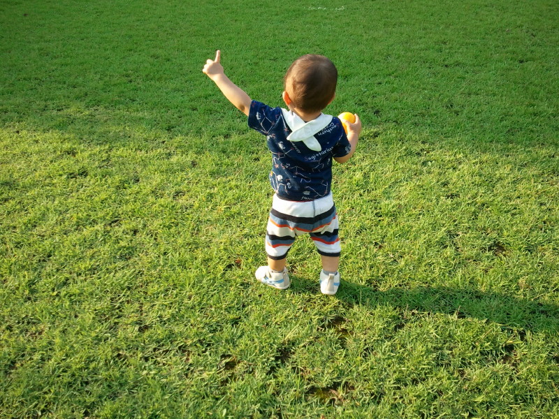 ボール遊びが上手になったので、公園にボールを持って出かけてみました。ところがおうちではキャッチボールできるのに、公園ではボールを手放さず。慧はずっと片手にボールを持ったままあちこちを歩きまくっていました。(智)
