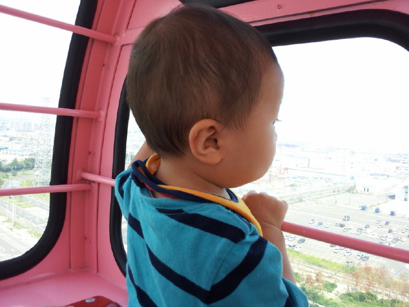 動く乗り物が大好きになった慧を観覧車に乗せてみました。震災の影響が残る景色を慧はなんと思ったか、じーっと外を見つめる慧です。その小さな手が社会に役立つ日が来ることを願う母です。(智)