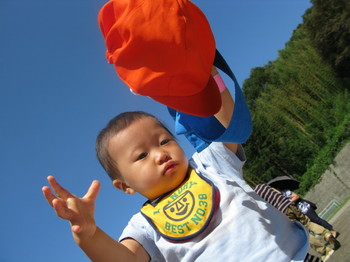 お店で食事をするより、デパートなどでステキお惣菜を買って公園や河原で食べるのが楽しい&平和なこの頃。晴天の秋空の下、まだおぼつかない足取りの慧はとにかく自分の好きな方にどんどん行ってしまう冒険家なのです。(智)
