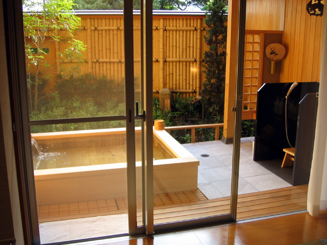 と、部屋に到着すると窓の外には専用露天風呂が。おお。