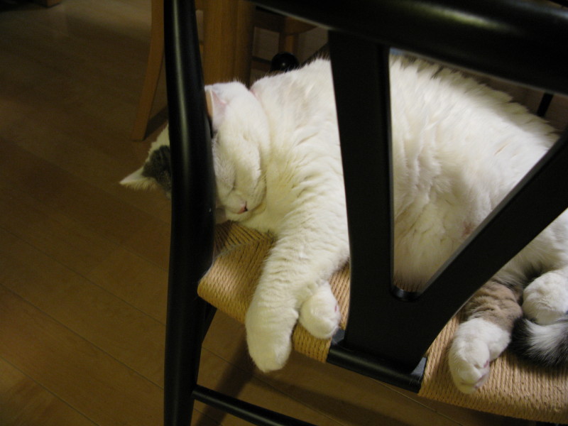 なぜだかこんなふうに、頭を椅子の柱?的なところにギューッと押しつけて、苦悶の表情を浮かべて寝ていることが多い。