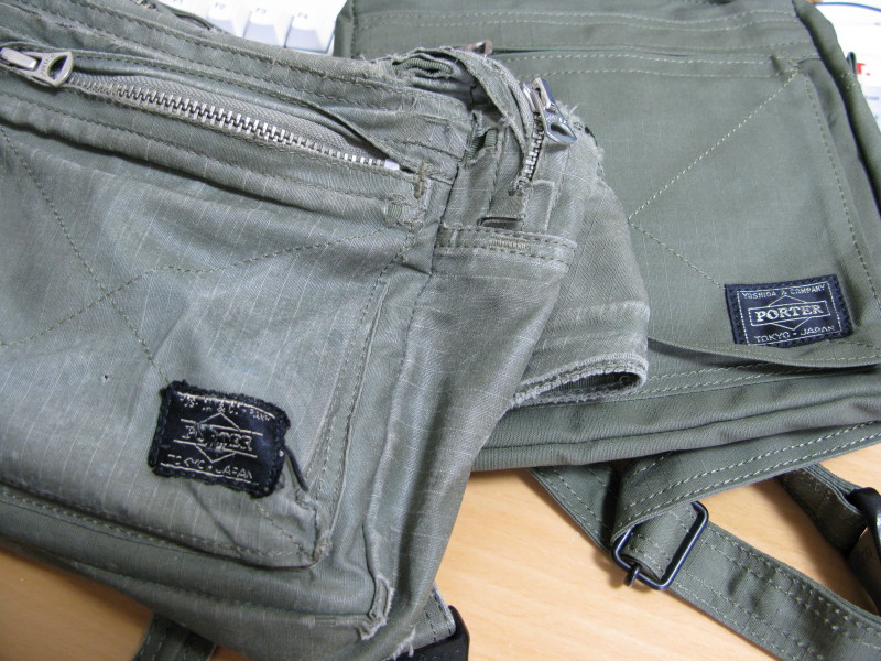 写真の手前にあるように、旧バッグはもう擦り切れてボロボロ。