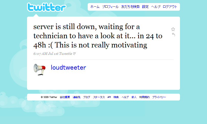 6月末のダウン以来、LoudTwitterはいまだ復旧する様子をみせない。
