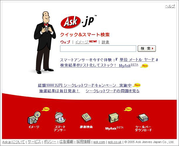 んで。最近Ask.jpという検索サイトの正式サービスが開始した。