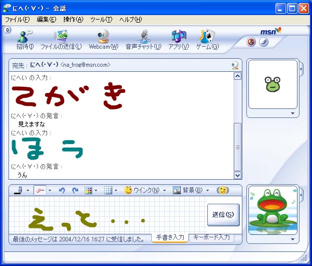 手書きメッセージが送れたり(6.2で受信確認)、ウインク(ウィンドウにアニメーションを表示、6.2は非対応)やシェイク(相手のウィンドウを揺らす、6.2は非対応)なんかの機能が追加されている模様。